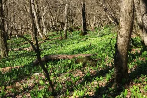 A Misinára vezető útvonal mentén még tömegesen nyíltak a hóvirágok. A tv-torony tövéből tovább indulva „felfedeztük” a sáfrányok és téltemetők egy kisebb csoportját, majd felsétáltunk a Kis-Tubes kilátójához, ahol medvehagymát gyűjtöttünk az ebédhez.